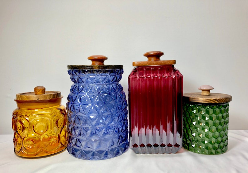 Boho Coastal Colorful Kitchen Canisters Mixed Greeb Purple Etsy