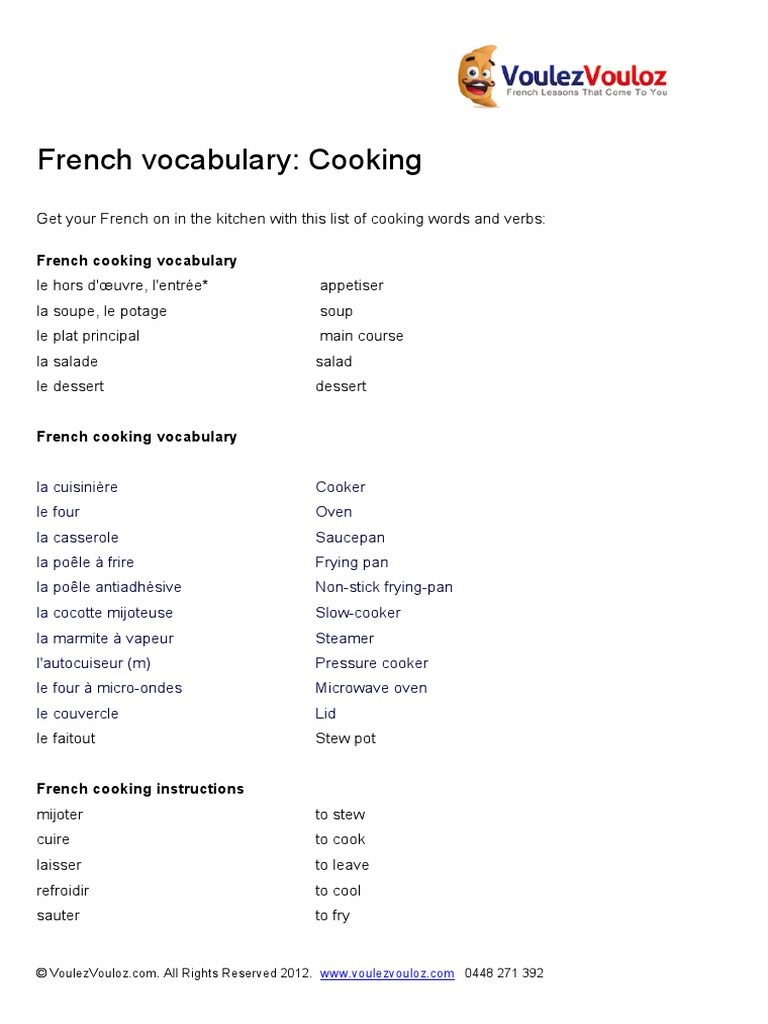 French Cooking Vocabulary