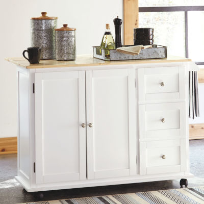 Dorel Living Wood Top Kitchen Cart In White Da6545w
